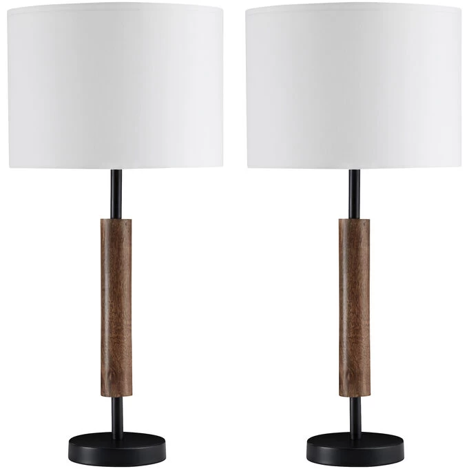 If you’re looking for modern accents for your home, this Set of 2 Maliny Table Lamps is a great option. Enjoy the sheer simplicity and sleek minimalism of these metal and wood table lamps. Their cylindrical shape and fabric drum shade will round out a contemporary, eclectic, transitional or modern space beautifully. The table lamps measure approximately 25 inches high, perfect for task lighting in the living room and bedside reading. They offer warm illumination when placed on either end of a sofa table or console. The three-way switch allows you to change the lighting with your mood. These versatile lamps light up any space in your home.