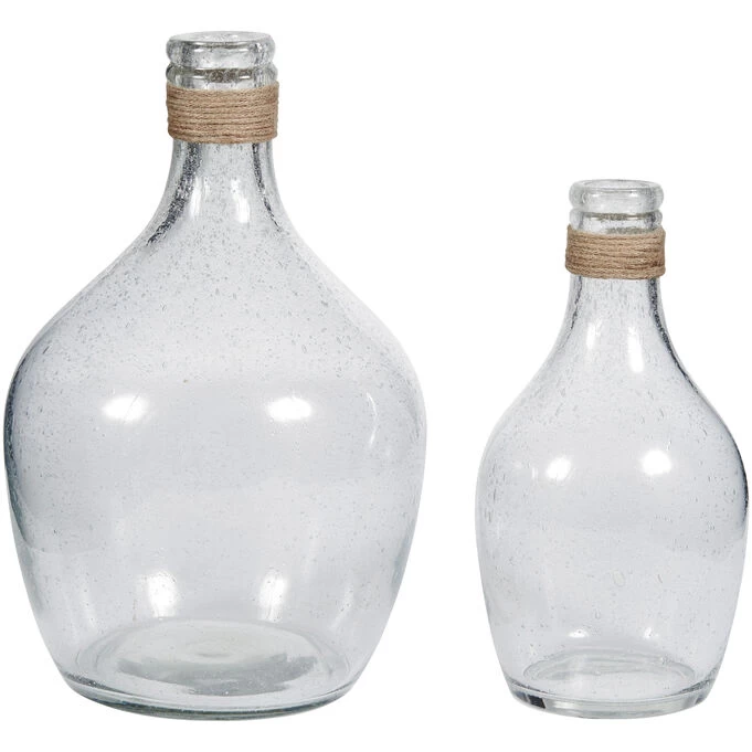 Marcin vases have a “found art” sensibility, with an intriguing seeded finish and rope trim at the neck. Display them as is, add some marbles, shells, or other filler, or use them as vases. You’ll love the creative potential, and the easy, casual attitude of these bottleneck glass vases.