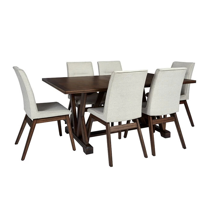 Looking for a dining chair with style and flair? Look no further than the Mimosa Dining Chair. With a textured polyester fabric and a base made from Rubberwood with a beautiful walnut brown finish, this chair is warm and inviting while projecting a very cool style.