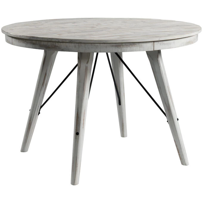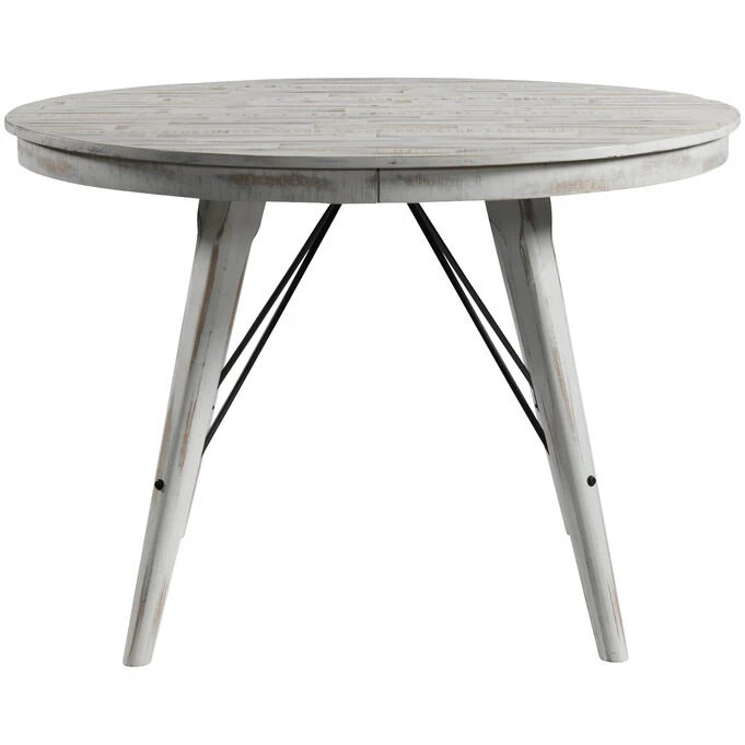 Crafted of solid acacia wood with a weathered white finish, this counter-height table flawlessly executes the farmhouse chic look that never goes out of style. Create a cozy dining space with the matching Modern Rustic Counter Stools (sold separately).