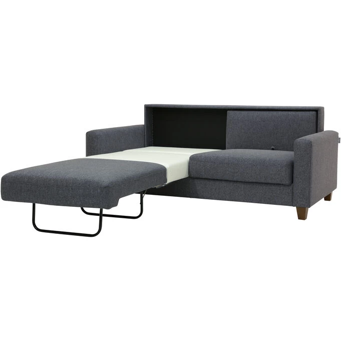 - This dual-motion, sleeper mechanism, rests a portion of the mattress perfectly below your seat, the other tucked away in the back frame.