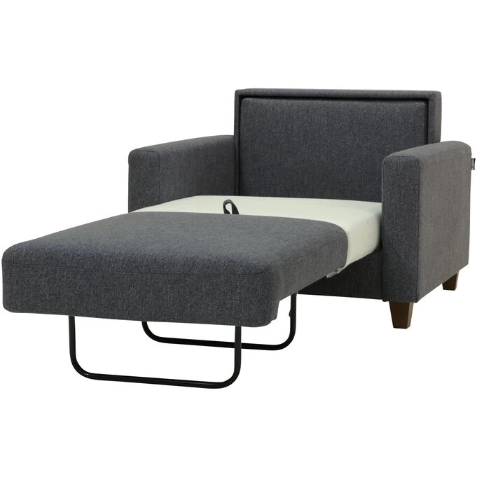 - This dual-motion, sleeper mechanism, rests a portion of the mattress perfectly below your seat, the other tucked away in the back frame.