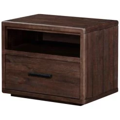 The Ocean nightstand, with its undulating lines and unique mill marks, becomes a showpiece in whatever room it lives. This solid pine 2 drawer nightstand has a traditional silhouette, but the movement and flow that echo its name are anything but traditional. The angular base and feet, along with the uneven drawers, give it an even more modern or contemporary vibe. The rough-hewn wood has been carved with both bandsaw and radial saw, giving each piece created a hand-crafted feel all its own. Add this nightstand to any other piece in the Ocean collection for a look that can’t be duplicated.