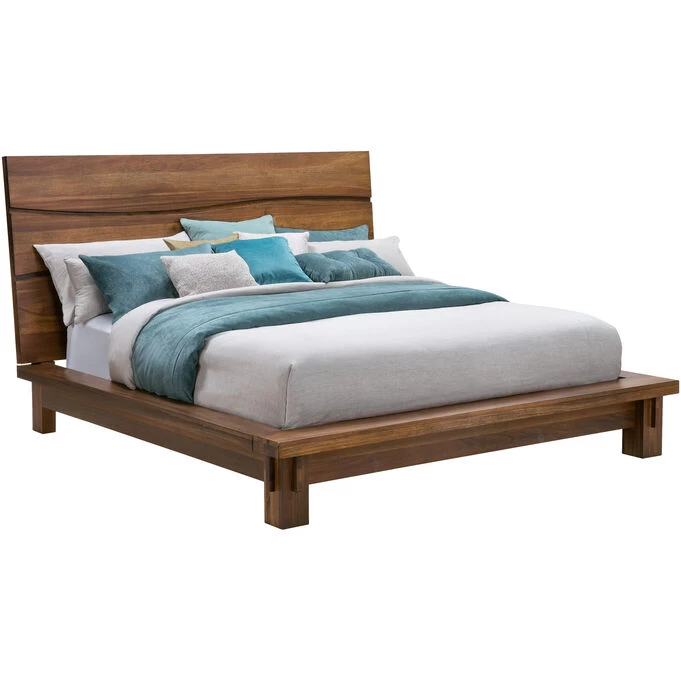 The Ocean bed, with its undulating lines and unique mill marks, becomes a showpiece in whatever room it lives. This solid pine bed has a traditional silhouette, but the movement and flow that echo its name are anything but traditional. The three long planks that make up the headboard are paired with the angular no-rise rails and footboard for an even more modern or contemporary vibe. The rough-hewn wood has been carved with both bandsaw and radial saw, giving each piece created a hand-crafted feel all its own. Add this bed to any other piece in the Ocean collection for a look that can’t be duplicated.