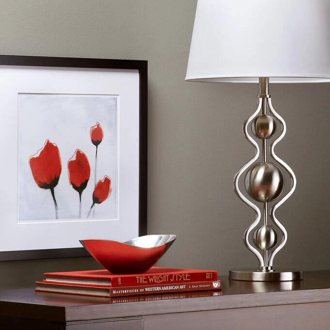 This brushed steel table lamp not only has a great look, it gives off great light.
