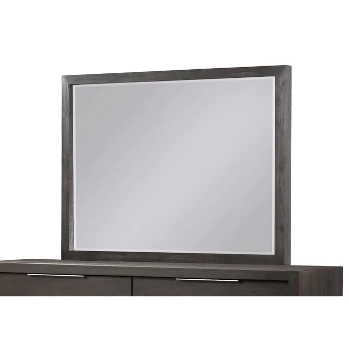 - Beveled glass mirror with keyhole brackets for wall mounting