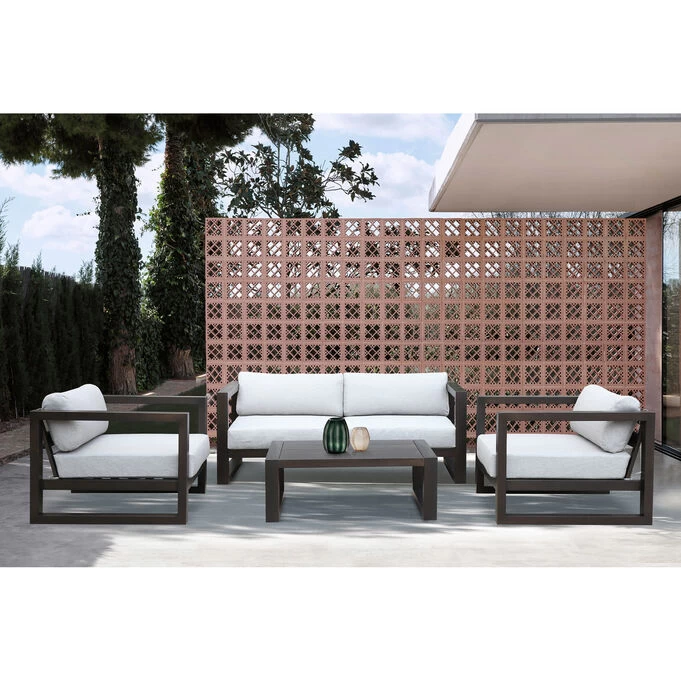 The Armen Living Paradise 4 Piece Eucalyptus Outdoor Patio Sofa Seating Set is an elegant ensemble of items that is certain to enhance the beauty of any contemporary outdoor space. Featuring 2 lounge chairs, 1 two-seater sofa, and 1 coffee table, the Paradise is an ideal arrangement for comfort. The stylish Paradise coffee table and seating frames are constructed from solid eucalyptus that naturally repels moisture with a minimalist aesthetic and a slatted seat construction. The Paradise lounge chair and sofa feature plush cushions, upholstered in brushed performance fabric, treated to be exceptionally resistant to the harshest elements. The Paradise outdoor sofa set is available with your choice of Dark finish or Light finish with gray cushions. We stand by the quality, the craftsmanship, and the integrity of our product by offering a 1-year warranty for all our products. We want our customers to enjoy our product and we will always be there to help with our top-notch customer service support. – Product Details provided by Manufacturer, Slumberland not responsible for errors in information.