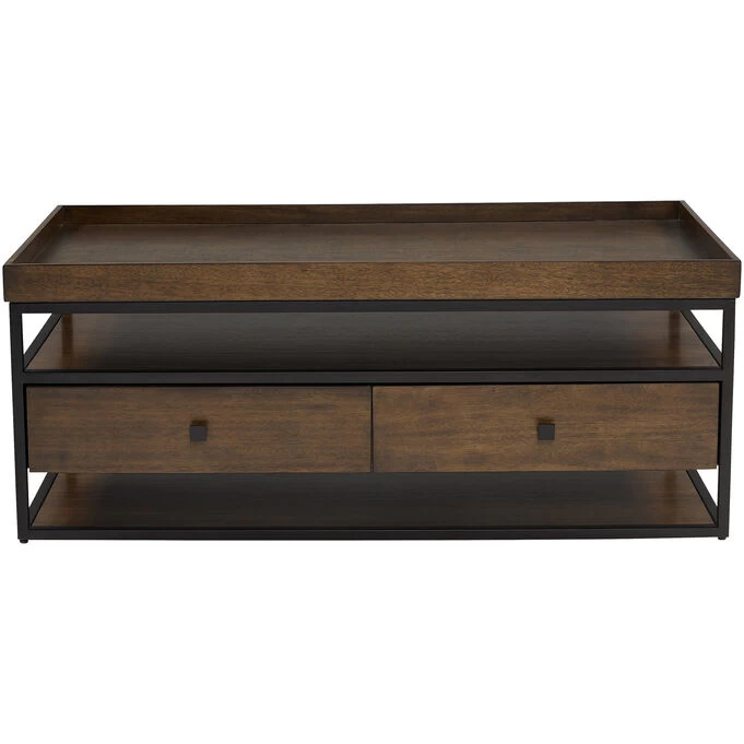 From the design geniuses at Progressive Furniture, Slumberland is proud to present the Park City Coffee Table. This rustic/industrial table is constructed from wood and high-quality metal, so it will last for ages. This table has a traditional coffee table height and width and has drawers and open space for organization and storage. If you’re a fan of rustic, industrial, or Boho styles, the Park City Coffee Table is for you. Stop by your local Slumberland Furniture showroom to see it on display, or order yours online today.