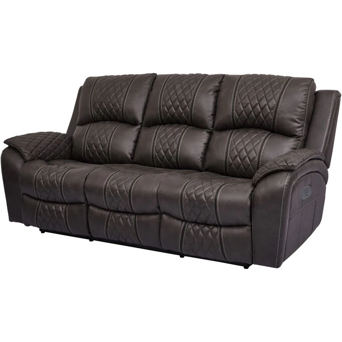 Get ready to be pampered. The Starling Power Plus reclining sofa features generous padding, sporty quilted detailing, and a host of power options. Operate the back, the footrest, and the tilting headrest from easy-to-reach power buttons on each side. A pair of USB ports keep your devices charged as you relax. This quality couch features sinuous spring construction and high-density foam cushions.