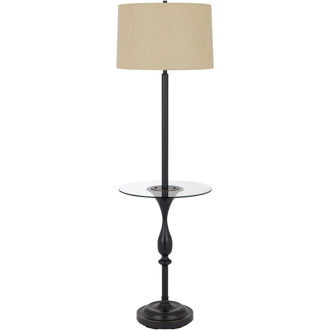 Brighten up your space with the Sturgis Floor Lamp. This stylish wide bottom pole lamp features a high dark bronze finish. The fully functional center glass table which offers USB entry ports to keep your devices charged and ready to go. With its clean and modern aesthetic, this lamp is sure to be a great addition next to your sofa, reading chair or even as an unconventional bedside table. Great for small entryways of foyers, the vintage vibes of the Sturgis Floor Lamp work well with cottage core, farmhouse, eclectic and transitional design styles. Add this stunning floor lamp to your home today.