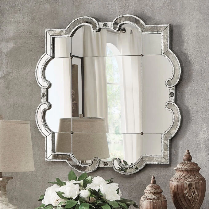 Traditional meets modern with this silver-plated wall frame with etched mirror panes.