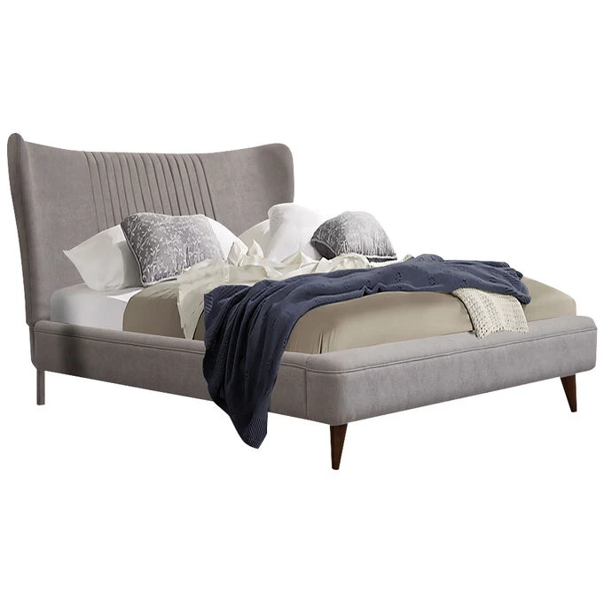 - Beautifully shaped fully upholstered headboard’s modified wing has elements of both contemporary and traditional stylings