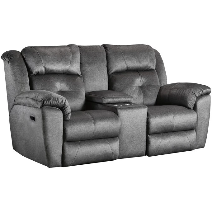 Southern Motion is a name that is synonymous with chaise seating and contemporary style elements. The Vista Reclining Console Loveseat is one of their finest recliners. With generous seat depth and a USB port and cupholders for convenience, you’ll never want to leave this seat. The Vista collection has single buttonless tufting, metal seat braces, and a solid oak seat box, making it the most durable chaise construction on the market. Slumberland Furniture has the Vista Reclining Console Loveseat. Visit a local showroom or order yours online today.