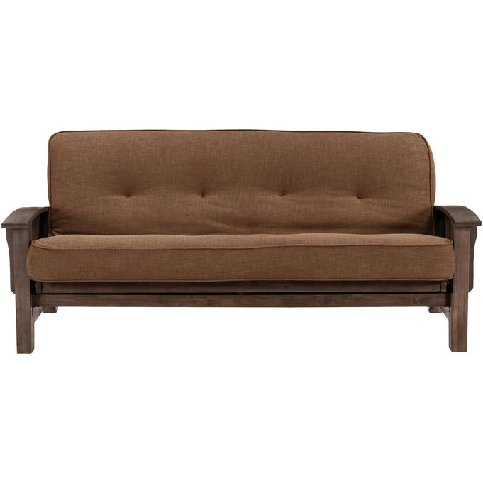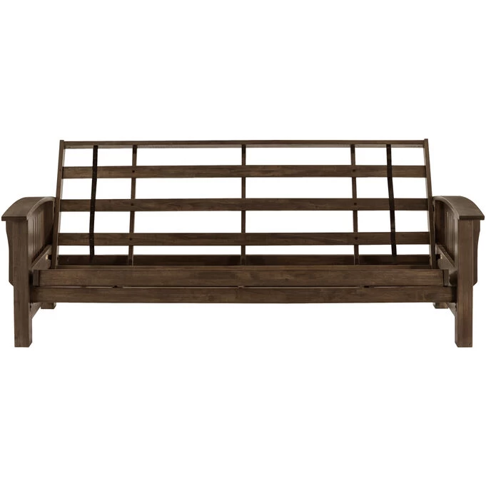 Upgrade your futon with the Washington futon frame. This slatted wood frame brings elegant, Mission-inspired styling into your living space. Perfect for an apartment, living room, family room, office or basement, this frame will complement many traditional to transitional decorating styles. Opens up flat for sleeping comfort. Made of select hardwoods. (Futon mattress not included.)