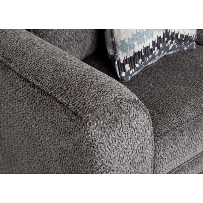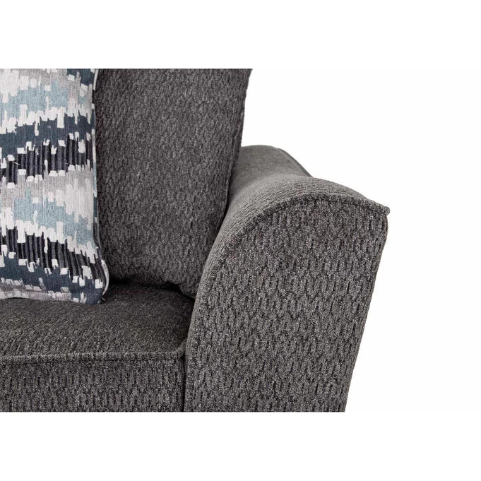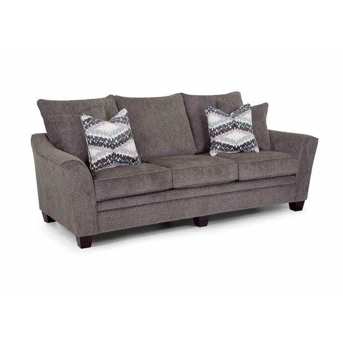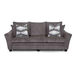 The Zander sofa provides deep seated comfort, with its pillow back and thick gel-injected foam seat cushions. Flared arms add a sophisticated touch to this super-versatile look, upholstered in a textured fabric that mixes grays and browns. This couch has a plywood frame with strong mortise and tenon joints. Both back and seat cushions are reversible for twice the wear. Don’t forget the matching ottoman for relaxation at its best!